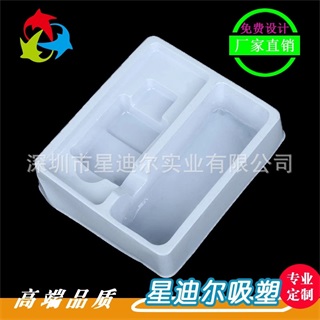 產品特點:吸塑加工廠采用白色PVC材質按照客戶提供的實物而設計定製的樣式經吸塑工藝熱成型加工後形成的塑料製品,本款產品環保無公害,盡顯高端大氣,為產品增值提升檔次。白色PVC吸塑內托在運輸過程中起到很好的保護作用,避免在運輸過程中因碰撞、擠壓而導致產品變形、損壞,從而影響公司形象。